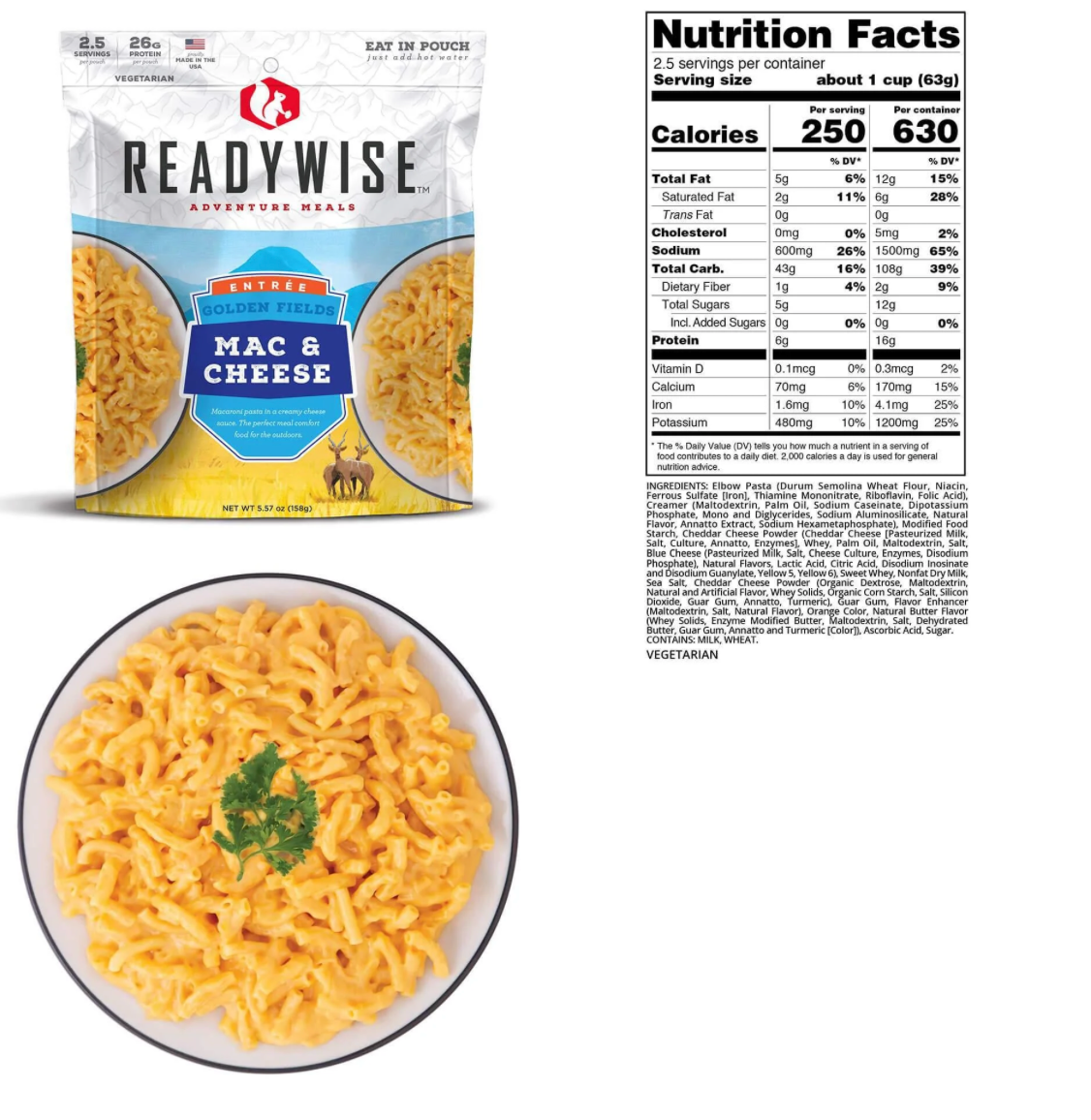 -20 servings of delicious, high-energy meals: Forget bland emergency rations! This kit comes with tasty breakfast cereals, hearty soups, and cheesy mac & cheese to keep your energy levels up for whatever comes your way.
